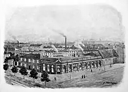 Um den aus dem abermaligen Mangel geeigneter Arbeitsstätten entstehenden Übelständen endgültig abzuhelfen, entschloss sich der Inhaber, eigene Lokalitäten einzurichten, und kaufte zu diesem Zweck im Jahre 1881 die Häuser Nr. 73 und 9, Ecke Ferdinandstraße und Jungmannstraße an. Es wurde sofort mit der Adaptierung angefangen. An der Ecke der beiden genannten Straßen erstand eine elegante Verkaufshalle. Die Hofgebäude wurden rekonstruiert und als Werkstätten eingerichtet. Das stetige Aufblühen des Betriebes, in welchem im Jahre 1883 eine eigene Tischlerei und 1885 eine eigene Schlosserwerkstätte errichtet worden war, hatte zur Folge, dass 1887 für die Magazine und für die Werkstätten ein neuer Hofflügel zugebaut werden musste, so dass die ganze Betriebsanlage die Fläche von 1200 m² einnahm.[2]