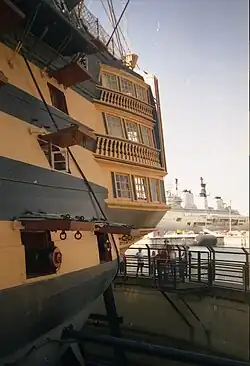 - Außenansichten von Bug und Steuerbordseite der HMS Victory in Portsmouth (Animiertes GIF, ca. 6 MB)