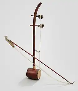 Haegeum (Hangeul 해금, Hanja 奚琴) ist eine zweisaitige koreanische Röhrenspießgeige. Die haegeum besteht aus einem fassförmigen hölzernen Korpus, einem Hals und aus zwei seidenen Saiten, ähnlich der chinesischen erhu.