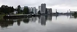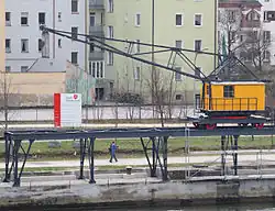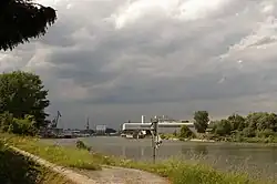 - ⊙ Westhafen, erbaut 1906 bis 1910 (Luitpoldhafen), Zufahrt, bei Donaukilometer 2776,4, rechts