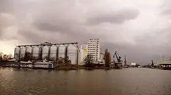 - ⊙ Osthafen, (erbaut 1960/61 und 1970–72) Zufahrt bei Donaukilometer 2773, rechts