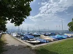 Der Hafen liegt am westlichen Dorfeingang von Männedorf, gegenüber der Seestrasse unterhalb der Kläranlage Weiern. Der Hafen bildet mit der daneben liegenden Villa Alma, der Landzunge im Westen, der Mole und den Stegen eine der schönsten Grünanlagen in Männedorf.