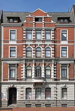 - Nr. 192: 5-gesch. Wohn- und Geschäftshaus von 1908, neobarock nach Plänen von A. Brünjes.[13]