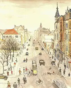 - Nr. 62/64: 4-gesch. Wohnhäuser im Stil der Jahrhundertwende mit zwei Giebel und Erkern.