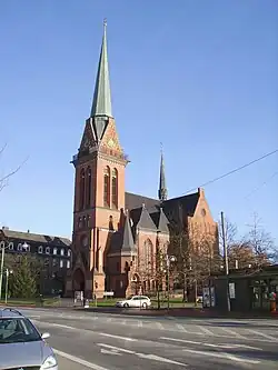 - Nr. 124: neugotische evang. Pauluskirche von 1905 nach Plänen von Eduard Wendebourg aus Hannover, Wiederaufbau bis 1952 nach Plänen von Hans Sieger; Glasfenster von 1952 von Heinz Lilienthal aus Bremen.[10]