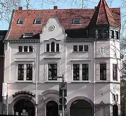 In dem Gründerhaus mit Türmchen an der Ecke Hagelkreuzstraße-Kirchhofstraße war von 1903 bis 1976 eine Gastwirtschaft mit dem Club 17 „der Treffpunkt für Teenager und Twens“. Er hieß später „Rubin Club“. Danach befand sich hier von 1976 bis Ende 2018 die Turm-Apotheke. Architekt des Hauses war Walter Furthmann.[28]