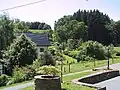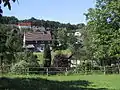 Der Wanderweg A2 führt durch Hahn, von Waldbröl kommend.