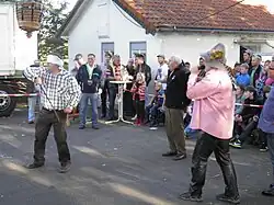 In der Lausitz gibt es den Brauch des „Hahnrupfens“, bei dem der Kopf des toten, hoch aufgehängten Hahns von geschickten Reitern gerupft werden muss. Der Sieger bekommt, ähnlich wie heute noch im Bergischen Land, einen Kranz aus Eichenlaub.