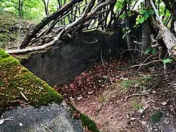 Zwischen 1936 und 1937 wurde der Bunkergürtel der Wetterau-Main-Tauber-Stellung errichtet um das Deutsche Reich vor einem schnellen Angriff von Westen zu schützen, der zur Abspaltung der südlichen Hälfte Deutschlands hätte führen können. Diese Verteidigungslinie verlief auch über den nordwestlichen Hahnenkammhöhenzug. Alle Bunkeranlagen waren durchnummeriert. Im Bereich des Abschnittes Hahnenkamm (HK), der sich von Horbach bis Hörstein zog, mit der Nummer 134–161.[14] Bei Michelbach, Wasserlos und Hörstein kann man im Wald noch Reste gesprengter MG-Bunker erkennen.