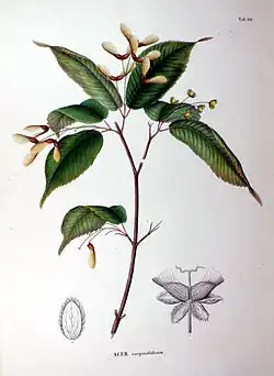 - ↑ Aceraceae. Kaede Zoku: Acer L.: 12. Acer carpinifolium, S. 609–610, 1965.