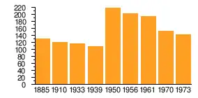 | Jahr | 1885 | 1910 | 1933 | 1939 | 1950 | 1956 | 1961 | 1970 | 1973 |