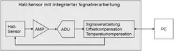 Meist werden Hall-Elemente in Schaltkreise integriert, in denen eine Signalverstärkung, Analog-Digital-Umsetzung, Digitale Signalverarbeitung sowie eine Offset- und Temperaturkompensation sowie Empfindlichkeitskorrektur erfolgt.