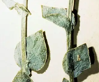 Halothamnus auriculus: Stängel mit Blättern bei dem Herbarbeleg: D. Podlech & K. Jarmal No. 28923 | ||||||||||||