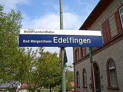 - ↑ Bahnstation Bad Mergentheim - zielbahnhof.de. In: bf-b.zielbahnhof.de. Abgerufen am 3. Mai 2020.