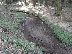 Entwässert über eine Verdolung einen Fischteich am linken Hang der Talrinne auf etwa 447 m ü. NHN etwa zweihundert Meter östlich des Jörgenhauses, 0,1 ha.