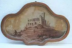 Generell reagierte der Deutsche Bund in den Jahren nach 1832 mit vermehrter Repression. Er ließ Personen des bürgerlichen Spektrums, die im Verdacht standen, mit revolutionären Ideen zu sympathisieren, verhaften, die Versammlungs- und Pressefreiheit einschränken und die Universitäten überwachen. Die reaktionären Maßnahmen, die eine drastische Verschärfung der Karlsbader Beschlüsse von 1819 bedeuteten, brachten die republikanische Bewegung somit vorerst zum Erliegen.[95] Am 5. Juli 1832 beschloss die Bundesversammlung zehn Artikel „zur Aufrechterhaltung der gesetzlichen Ruhe und Ordnung im Deutschen Bund“, die die sechs Artikel vom 28. Juni 1832 ergänzten und als Reaktion auf das Hambacher Fest gelten. Nicht zuletzt wegen des Festes, dem Wachensturm und der im Zusammenhang stehenden Franckh-Koseritz’schen Verschwörung schuf die Bundesregierung die Bundeszentralbehörde mit Sitz in Frankfurt am 30. Juni 1833.[Anm 19] Dieses Inquisitionsorgan ermittelte bis zur Auflösung im Jahr 1842 gegen mehr als 2.000 Verdächtigte und registrierte diese im „Schwarzen Buch“.[96] Viele zogen sich vom politischen Leben zurück, der sogenannte Biedermeier-Lebensstil verstärkte sich. Denunziationen und Spitzel trugen dazu maßgeblich bei.[97] Dennoch drückte das Bürgertum sein Streben nach einem geeinten Deutschland, nach Liberalität und Volksherrschaft aus, indem es entsprechende kunsthandwerkliche Gegenständen erwarb und verwendete. Sehr beliebt war unter anderem Geschirr mit der Abbildung des Hambacher Schlosses. Die Regierung konfiszierte diese Souvenirs, da diese Zeugnis revolutionärer Gesinnung sein sollten.[98]