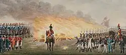 Als am 30. Mai 1813 wieder napoleonische Truppen unter Marschall Davout anrückten, um auf Befehl Napoleons Hamburg als wichtigste Bastion Norddeutschland zurückzugewinnen, zogen die unterlegenen Russen und die Hanseatische Legion nach einem Gefecht an der Nettelnburger Schleuse ab und die französischen Autoritäten wurden wieder eingesetzt. Bürgermeister wurde nun Friedrich August Rüder, der das Amt bis zum Mai 1814 ausüben sollte.[6] Die Franzosen stellten ihre Autorität mit zahlreichen Repressalien gegen die Bevölkerung wieder her.