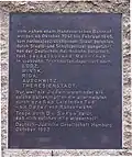 1997, Gedenktafel für die Opfer in den Konzentrationslagern, die durch das bei der im Meßberghof ansässigen Firma Tesch & Stabenow (Testa) hergestellte, Gift Zyklon B starben; Text: Dos lied vunem ojsgehargetn jidischn volk (Großer Gesang vom ausgerotteten jüdischen Volk) (Stätten jüdischen Lebens) |