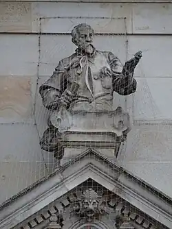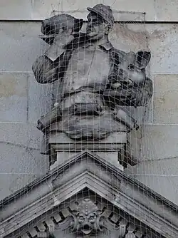 In diesen Figuren hat der Bildhauer Aloys Denoth bekannte Persönlichkeiten jener Zeit porträtiert. Heinz-Jürgen Brandt stellt in seinem Buch dar, dass diese Figurenreihe von den Zeitgenossen als willkommene Belebung der Fassade und als Darstellung des bürgerlichen Fleißes lebhaft begrüßt wurde.[11]
