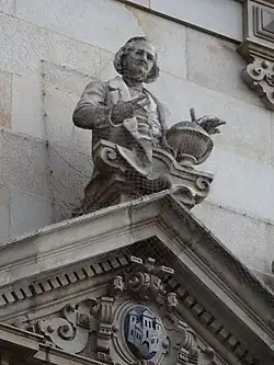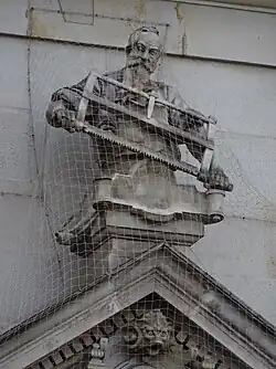 Über 28 Fenster der Repräsentationsetage wurden auf die Fensterverdachung 28 Charakterbüsten für Vertreter der bürgerlichen Berufe gesetzt.