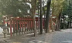 An den Eingängen zum Schreingelände stehen große Torii. Das große Torii am östlichen Eingang wurde 1996 aus Stahl gefertigt.[1]