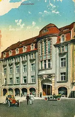 Die HHL wurde im April 1898 als private Handelshochschule auf Initiative der Leipziger Industrie- und Handelskammer und des Deutschen Verbands für das kaufmännische Unterrichtswesen nach den Ideen des Pioniers des Handelshochschulgedankens, Gustav von Mevissen, gegründet.[3] Nach mehreren Umzügen hatte sie seit 1910 ihren Sitz in dem von Fritz Schumacher entworfenen Gebäude in der Ritterstraße (heute Geschwister-Scholl-Haus). 1946 wurde sie als Fakultät in die Universität Leipzig eingegliedert, erhielt 1969 jedoch als Nachfolgerin der geschlossenen Hochschule für Binnenhandel zumindest Teilautonomie zurück.