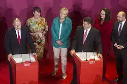 - ↑ Hannelore Kraft mit starkem Ergebnis als SPD-Chefin in NRW wiedergewählt. Rheinische Post, 25. September 2016, abgerufen am 14. Mai 2017.
