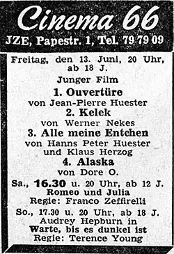 - ↑ Dagmar Schwalm: Essens bedeutender Kinobetreiber Hanns-Peter Hüster ist tot. In: Westdeutsche Allgemeine Zeitung. Funke Mediengruppe, 13. März 2020, abgerufen am 13. März 2020. (Abonnement erforderlich)