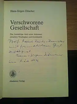 - Verschworene Gesellschaft. Das Auswärtige Amt unter Adenauer zwischen Neubeginn und Kontinuität. Akademie, Berlin 1995, ISBN 3-05-002655-3.
