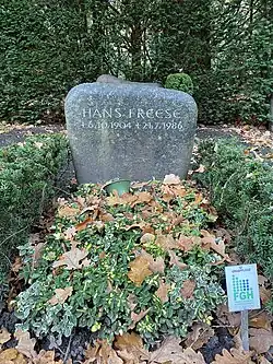 Hans Freese wurde auch „der Karajan der Blasmusik“ und „Küsten-Karajan“ genannt.[1] Er verstarb 81-jährig und wurde auf dem Friedhof Ohlsdorf beigesetzt. Die Grabstätte liegt im Planquadrat AB 21 südöstlich von Kapelle 7.