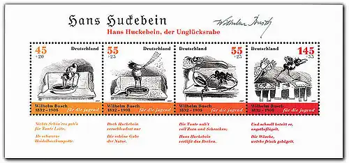 Briefmarkenblock Für die Jugend 2007: „175. Geburtstag Wilhelm Busch – Hans Huckebein, der Unglücksrabe“