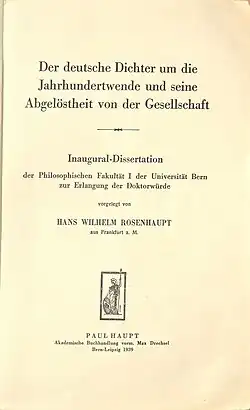 - Der deutsche Dichter um die Jahrhundertwende und seine Abgelöstheit von der Gesellschaft. Bern : Haupt, 1939. Dissertation Universität Bern 1935