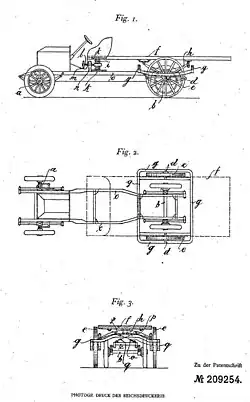 - ↑ Patent DE209254C: Gestellanordnung für Motorfahrzeuge. Veröffentlicht am 2. Mai 1908, Erfinder: Friedrich Lüthke, Bremen.