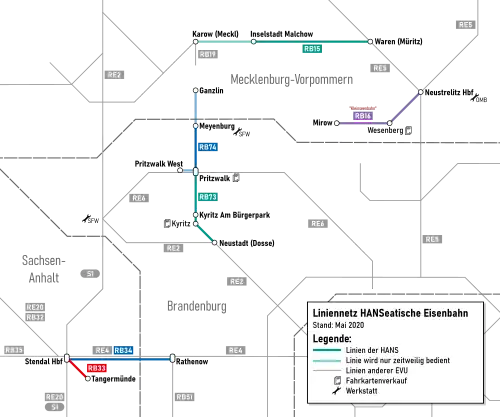 - ↑ VBB: Zuschlag für Netz „Elbe-Altmark“ an Hanseatische Eisenbahn GmbH erteilt ( vom 19. Februar 2017 im Internet Archive)