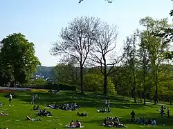 Während die eher steilen Südhänge im ausgehenden 19. Jahrhundert im unteren Teil oft mit Villen oder Häusern aus der Gründerzeit bebaut wurden, befinden sich am nördlichen Rand einige Kleingartenanlagen.