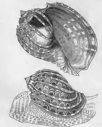 Harpa major, William Charles Linnaeus Martin: Pictorial Museum of Animated Nature (1848–1849), vol. 2, p. 236. | ||||||||||||