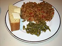 - Hachis parmentier oder Shepherd’s Pie: Haschee aus Rindfleisch und gebratenen Zwiebeln, das mit einer Schicht Kartoffelpüree bedeckt und abschließend mit Paniermehl und Butter gratiniert wird.[3]