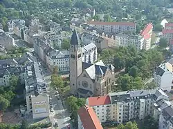 Wahrzeichen des Stadtteils ist die Markuskirche, die von 1910 bis 1913 erbaut wurde. Es handelt sich um einen neobyzantinischen Bau, der von Architekt Heinrich Adam entworfen und unter der Leitung des Stadtbaurats Wilhelm Goette ausgeführt wurde. Im Zweiten Weltkrieg wurde die Kirche durch einen Bombenangriff beschädigt und in den Nachkriegsjahren nach und nach wieder instand gesetzt. 1965 bis 1967 wurde der Kirchsaal auf Höhe der Emporen geteilt und es entstanden ein oberer und ein unterer Kirchsaal und verschiedene Gemeinderäume. 2003 wurde der obere Saal renoviert, wobei die alte Malerei von 1913 wieder freigelegt wurde.