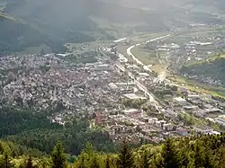 In den letzten Monaten des Zweiten Weltkriegs bestanden in der Nähe der Stadt, am Vulkan, zwei Außenlager des KZ Natzweiler-Struthof und ein Außenlager des Sicherungslagers Schirmeck-Vorbruck. Grund für die Einrichtung des Lagers war die Verlagerung von Produktionsstätten mehrerer Rüstungsbetriebe in die bombensicheren Bergwerksstollen der Hartsteinwerke Vulkan. In dem Lager wurden etwa 1.700 Häftlinge aus 19 Ländern unter quälenden Bedingungen zur Zwangsarbeit gezwungen. Hunderte von Häftlingen überlebten ihren Aufenthalt nicht. Am 28. April 1948 wurden diese Stollen gesprengt, was auch von seismischen Stationen registriert wurde.[5] Erst im Jahre 1998 wurde die „Gedenkstätte Vulkan“ eingeweiht, die an diese Zeit erinnert.[6]