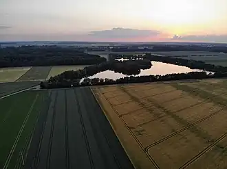 Das Gewässer entstand durch Sand- und Kiesabbau in der zweiten Hälfte des 20. Jahrhunderts. Nach Beendigung der Baustoffgewinnung wurde das Gelände durch Rekultivierung in den 1980er Jahren landschaftlich gestaltet.