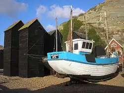 - Net-Shops: In Hastings wird noch rege Fischerei betrieben. Da jedoch, insbesondere bei Flut, der lange Strand zu schmal ist, um die Fischernetze zum Trocknen auszulegen, gibt es in Hastings eine Besonderheit: die sogenannten Net-Shops am Strandhafen, schmale, hohe Brettergebäude, in denen die Netze aufgehängt werden.