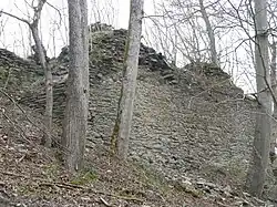 Als Gefolgsleute der Falkensteiner erbten die Hattsteiner auch deren Gegensatz zu den Reichsstädten der Wetterau. Zudem beteiligten sich Angehörige des Geschlechts an Überfällen (sogenanntes Raubrittertum). Legendär ist Friedrich von Hattstein (auch Hatzstein oder Hatzsteyn) mit seinem Streit um Haus Eichelbach.[5] Der spätere Stadthauptmann von Montabaur (1359–1361) und Limburg wurde 1363 als Limburger Stadthauptmann von den Reifenbergern erschlagen.[6][7] Verschiedene Koalitionen der Städte und lokaler Fürsten versuchten, sich der Burg Hattstein zu bemächtigen und das Raubrittertum auszuschalten. Erstmals eroberte ein Landfriedensaufgebot der Städte Frankfurt, Friedberg, Gelnhausen, Limburg, Kurtrier, Kurpfalz und einigen anderen 1379 die Burg. Die Herren von Hattstein mussten den Siegern ein Öffnungsrecht einräumen.[8] Als dennoch weitere Raubzüge von der Burg ausgingen, kam es zu erneuten Belagerungen 1393[9] und 1428, die aber wegen Uneinigkeit der Belagerer scheiterten. Im Jahr 1432 führte ein Überraschungsangriff eines Landfriedensbündnisses zum Erfolg. Die Burg wurde fortan als Ganerbschaft unter Frankfurter und Mainzer Beteiligung geführt, jedoch 1468 an die Hattsteiner zurückgegeben. In der folgenden Zeit wurde sie immer weniger instand gehalten und verfiel allmählich. Philipp Georg von Hattstein verkaufte 1614 die Burg schließlich an Johann Heinrich von Reifenberg.