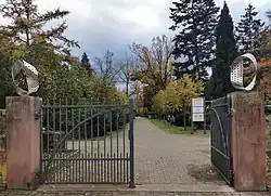 - Ehrenmal für die Opfer der Bombenangriffe auf die Stadt Hanau. 12 der 15 Bronzetafeln, die das Kernstück der Anlage bildeten, wurden in der Nacht vom 13. auf den 14. August 2017 gestohlen.[1] Die Gedenktafeln wurden in neuer Form an alter Stelle wieder angebracht und die neue Anlage am 19. März 2018 der Öffentlichkeit übergeben.[2]