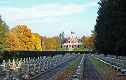 Das wohl bekannteste Monument ist das Pomnik Braterstwa Broni (Denkmal der Waffenbrüderschaft), das 1967 von Sławomir Lewiński gestaltet wurde. Es ist ein Militärdenkmal, das einen geflügelten Husaren zeigt, und es steht auf einem Hügel an der Hauptachse. Vom Hügel besteht ein großartiger Blick auf die Hauptkapelle.