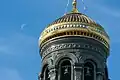 Die Form der Hauptkuppel soll den Helm Alexander Newskis symbolisieren. Der Tambour, auf dem die Hauptkuppel mit einem Gesamtgewicht von 80 Tonnen ruht, besteht aus einem hochlegierten Stahlrahmen, dessen „Festigkeitsfaktor“ zwischen 300 und 1500 Jahren liegen soll. Die Hauptkuppel wurde am Boden zusammengebaut und mit einem 750-Tonnen-Kran, der mit zusätzlichen 1250 Tonnen beschwert werden musste, hochgehoben.[15]
