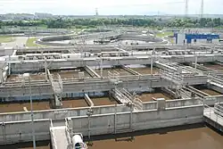 - 15 Nachklärbecken mit einem Innendurchmesser von je 64 Metern, einer mittleren Tiefe von 4,1 Meter und einem Gesamtvolumen von 200.000 m³.