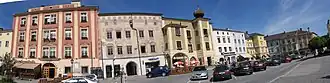 Rund um den Hauptplatz stehen neben der Stadtpfarrkirche 23 denkmalgeschützte Häuser. Bei den beiden großen Stadtbränden 1507 und 1516 wurden alle Häuser der Stadt vernichtet, so auch in diesem Bereich. Auf Grund der Stadtbrände sind viele alte Dokumente aus der Erbauungszeit der Häuser verloren gegangen.