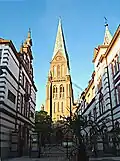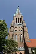 Hallenkirche, nach schweren Kriegszerstörungen wiederaufgebaut, im Dach Wohnungen eingebaut | ![]() | |