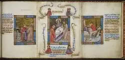 Belleville-Brevier[14] | um 1323–1326 | Frankreich: Paris | Jean Pucelle | lateinisches Brevier | Paris, Bibliothèque nationale, lat. 10484 | |