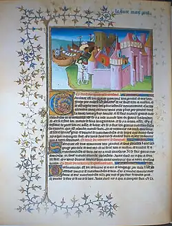 Buch von den Wundern der Erde[42][43] | um 1410–1412 | Frankreich: Paris | Boucicaut-Meister, Bedford-Meister u. a. | Geschenk des Johann ohne Furcht für seinen Onkel Jean de Berry | Reiseberichte, darunter Marco Polo: „Il Milione“; 84 großformatige und zahlreiche kleinere Miniaturen | Paris, Bibliothèque nationale, Ms. fr. 2810 |